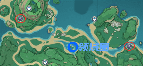 言归正传,这个就是目前鹤观岛的两个地灵龛的位置,奖励非常丰厚,能够抵得上你去开十几个普通的宝箱,一定不要漏掉了。