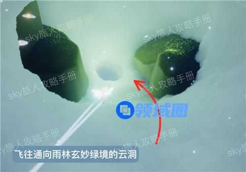 然后会看到这里通向雨林妙绿境的云洞这里,从这里进去。