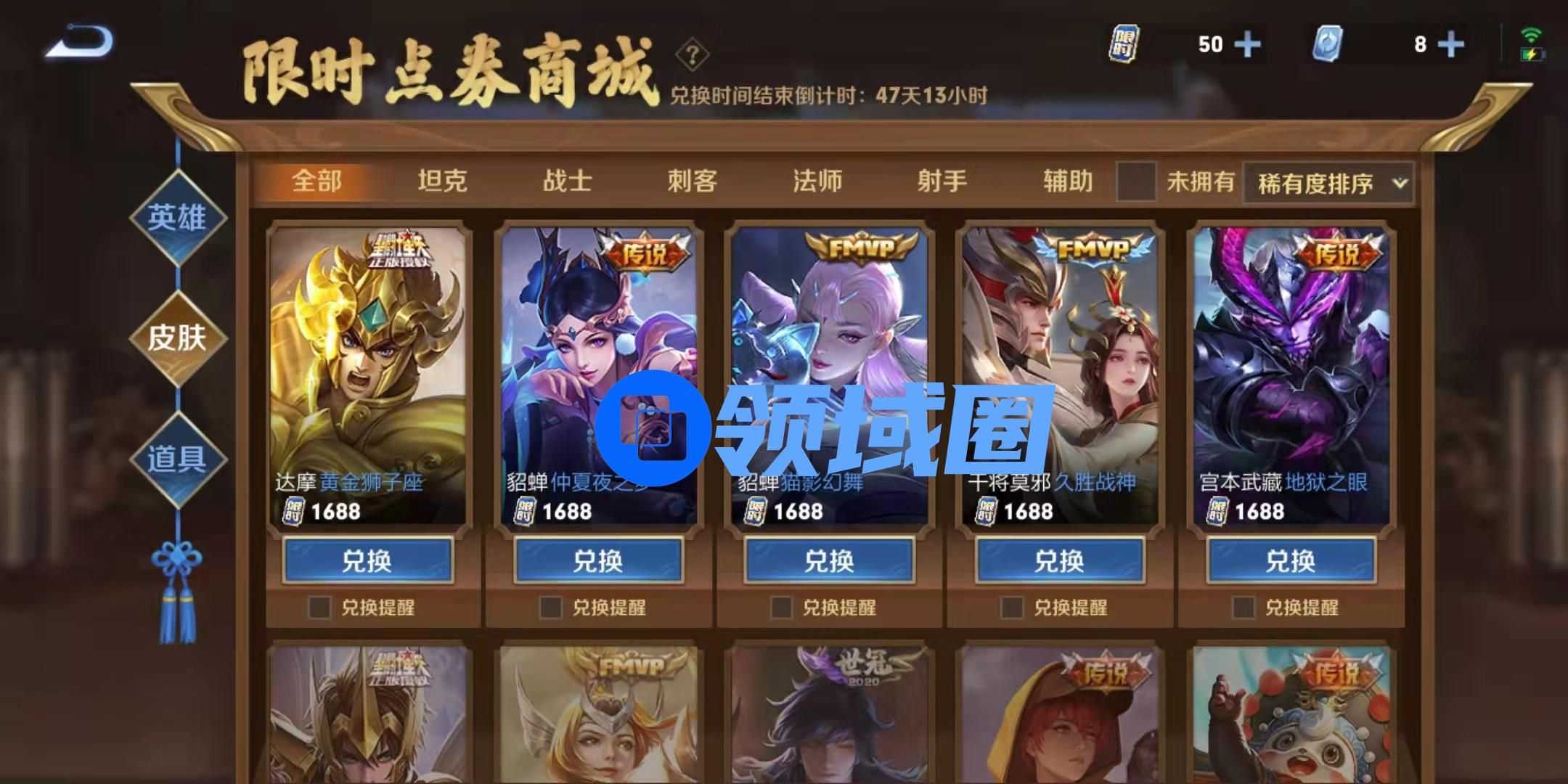 5、限时点券可用于限时点券商城中的英雄、皮肤以及道具,大家也可以在商城中查看自己的余额;