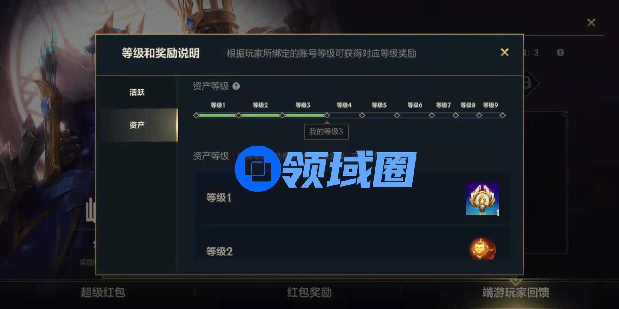 资产等级:根据圳定账号在盖游所有区服皮肤等的资产计算得出。最高资产等级为9级,能获得所有的端游绑定奖励,里面就有高级峡谷新程皮肤自选宝箱,打开后,可以在礼包中任选一个传说皮肤。一个有八个皮肤宝箱可以领取,相对应有八个皮肤和一个头像