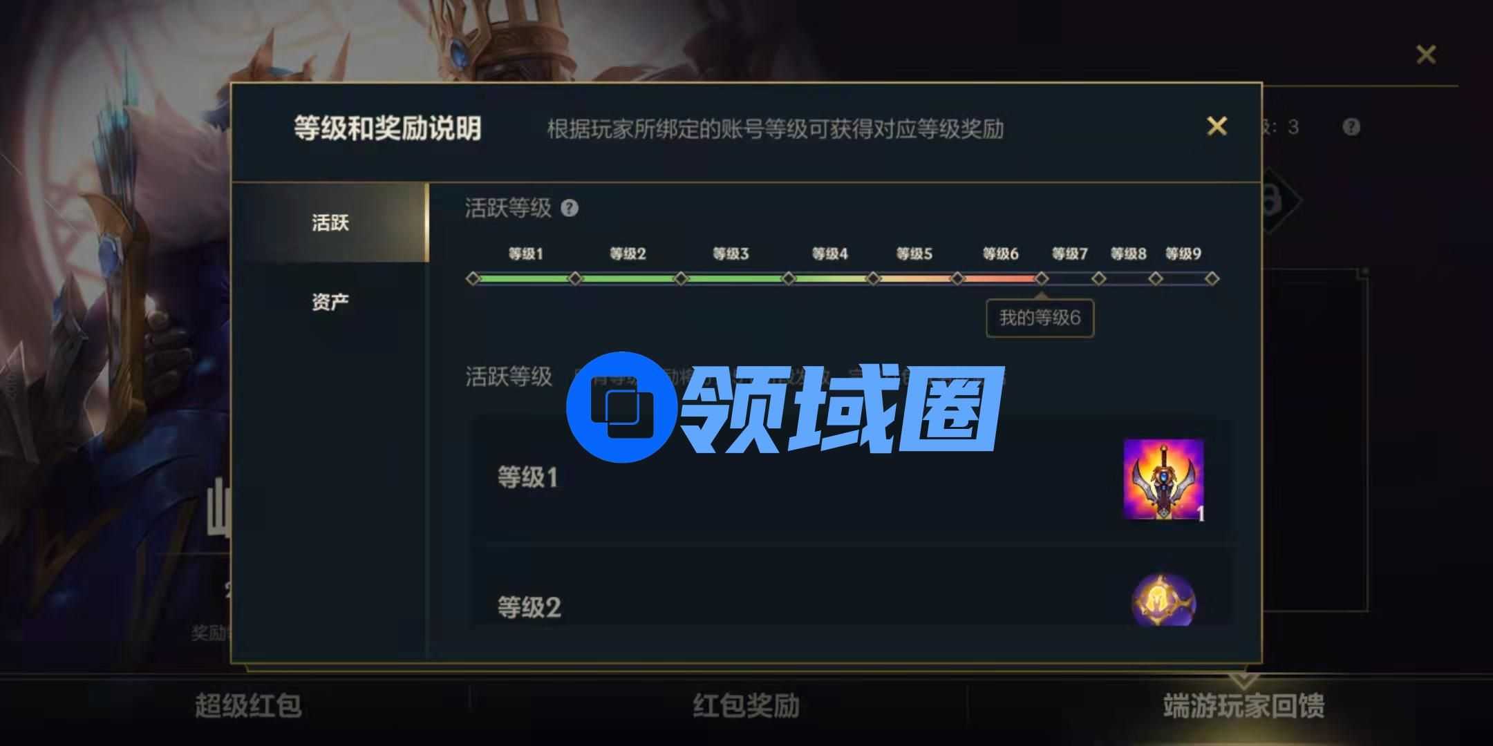 活跃等级:根据销定能号在端游所有区服的历史对局情况综合计算得出,最高活跃等级为9级,能获得所有的端游绑定奖励,里面就有高级峡谷新程英雄自选宝箱,打开后,可以在礼包中任选一个传说皮肤。一个有6个英雄宝箱可以领取,相对应有6个英雄和三个头像