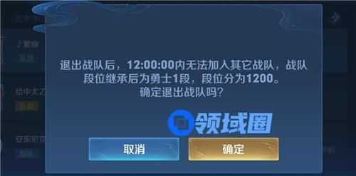 言归正传,只要是自己主动离开的战队,都要等十二个小时的时间。注意,退出战队后,段位继承会默认从勇士1段,和1200的段位分,如果你在战队中的分段比较高,可要慎重考虑。