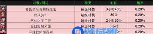 首先我们都了解一下有什么周边,一共有四个周边分别是:一般周边、稀有周边、独特周边,超级时装时间表