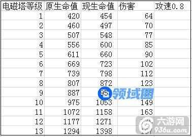 而受到两次更新buff增强之后的电磁塔,此次增加生命值之后更是血量惊人,9级电磁塔血量直逼1000点!