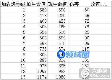 很明显在1级的时候就砍了10点攻击力,很伤。众所周知,影响野猪输出的一大因素就是其在攻击防御性建筑时所需要的攻击次数。那么我们来看一下如今使用率高的几大防御性建筑的血量。首先是野猪的死对头——加农炮。