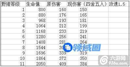 那么百分之六的攻击对于野猪卡组而言到底有多大影响呢?我们先来看下野猪改版前后各个等级的伤害对比图。