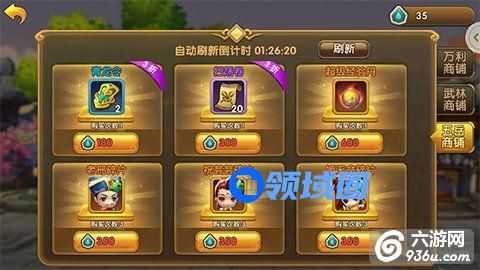 武林商铺可以购买到扫荡卷伙伴碎片之类的东西,不过这里需要的是武林币,武林币通过武林争霸获得。