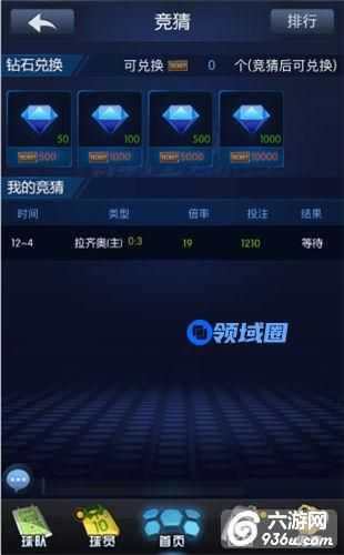 每日可领取免费竞猜彩票(竞猜券),玩家使用彩票购买竞猜结果进行投注。只有通过竞猜赢得的彩票才可以兑换钻石;