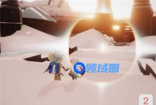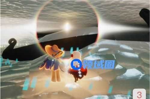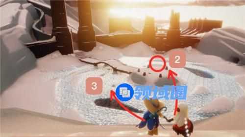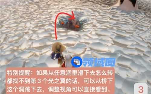 第2/3个:继续滑行经过一个动画到达溜冰场,面向滑行赛道的断桥上有第2个光之翼,滑冰场的冰下船边有第3个光之翼。