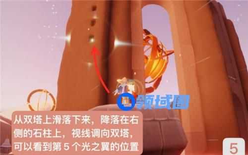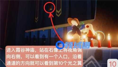 第10个:进入峡谷神庙,站在石像上将视角调向右侧,可以看到有一个入口,沿着通道的方向就可以看到第10个光之翼。