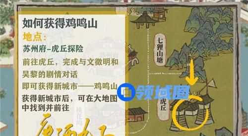 然后在虎丘完成与文徽明和吴黎对话,这样就可以解锁了,具体的位置在虎丘的山脚下,如下图: