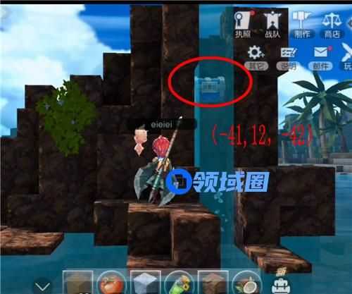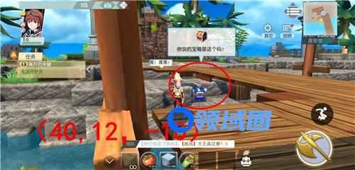 走进红色圈圈所标记的方块堆中,就可以看见宝箱了。