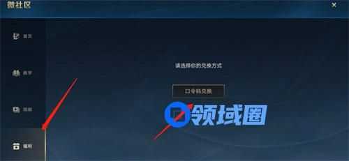 2、然后在微社区主界面,点击左下角的福利,就会出现口令码兑换按钮了,再次点击口令码兑换。