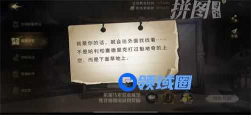 碎片线索是“我是你的话,就会往外面找找看……不是哈利和塞德里克打过魁地奇的上空,而是下面草地上”这个线索是需要我们到魁地奇寻找。