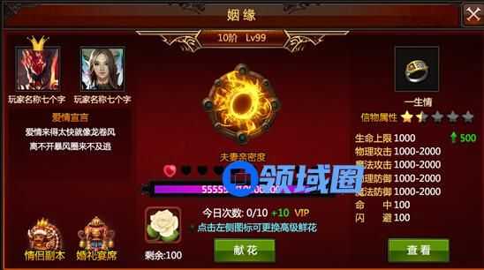 定情信物自有一套养成玩法,夫妻可以提升“夫妻亲密度”来对信物进行培养。