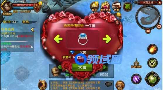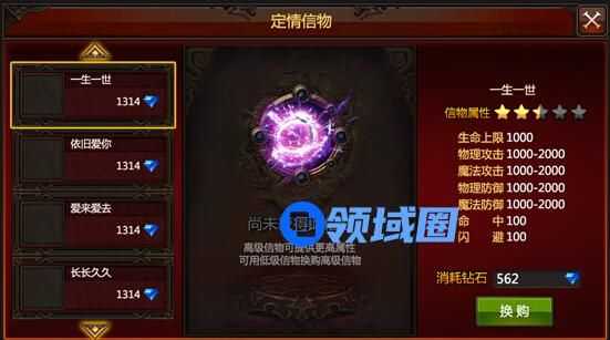 求婚时你需要选择一枚“定情信物”,操作界面即可切换信物,信物自带一套属性加成,价格越高的定情信物,基础属性也就越高。如果小伙伴对求婚时选的信物不满意也不要着急,因为在求婚成功后,在姻缘界面里你们还是可以随时更换更高品质的“定情信物”的。