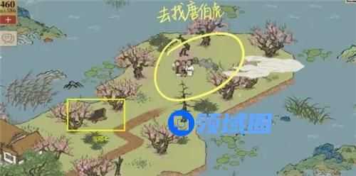 宝箱位置就在酿酒坊后面,在一个半岛上,也是在桃花树下的位置,可以获得一个金画轴。