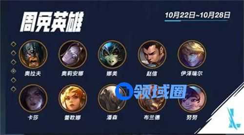 而这周的周免英雄有十个英雄分别是:如下图
