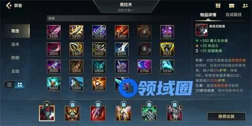 奥拉夫核心装备是黑切,有黑切之后,输出是已经足够,然后叠多点抗性和肉度,第二件装备根据场上的情况定,顺风局可以先出铁手,再出正义荣耀,也可以出死亡之舞先,对面法师起来就先出振奋。最后可以在补复活甲。
