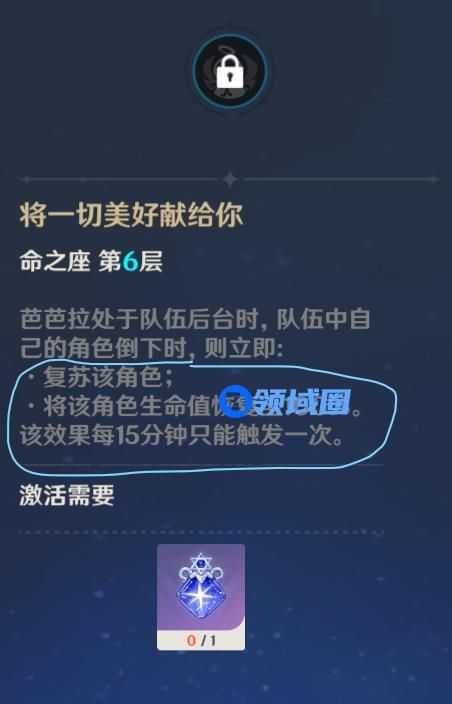 芭芭拉在6命且处于队伍后台时能立即复苏角色。