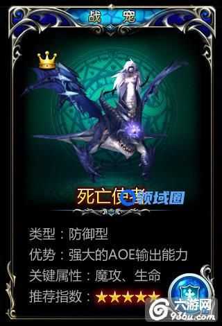 死亡使者,《神之刃》游戏中最为强大的战宠没有之一,强大的群攻技能不仅能够给对方造成恐怖的杀伤,还能够降低己方所受到的伤害。三个被动属性增加 魔攻、魔防和生命上限,使得死亡使者在攻防两端的威力大大增强。死亡使者非常百搭,无论是秒杀流还是持久战,它都能够占据一席之地。死亡使者的出手速度并 不算特别出色,但也足够满足绝大部分战斗的需求。和传统的防御型宠物不一样的是,死亡使者需要优先发展魔攻、暴击和生命等攻击向的属性。