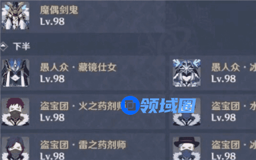 3、上半:神里、迪奥娜、莫娜、钟离;下半:雷神、万叶、班尼特、香菱
