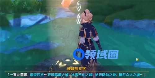 根据中间残缺的文字可知,要按照狂风隔蔽之墟(风龙废墟)→冰雪不化之峰(龙脊雪山)→绝云隐仙之地(绝云间)→璃月众人之城(璃月城)这个顺序点亮石像才行,具体顺序如下所示。