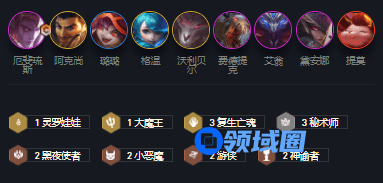 首先我们要确定阵容英雄的选择,英雄选择分别是厄斐琉斯+阿克尚+露露+格温+狗熊+稻草人+艾翁+戴安娜+提莫。组成羁绊为灵罗娃娃,大魔王,三复生,三秘术,二黑夜使者,二恶魔,二游侠,二神谕。