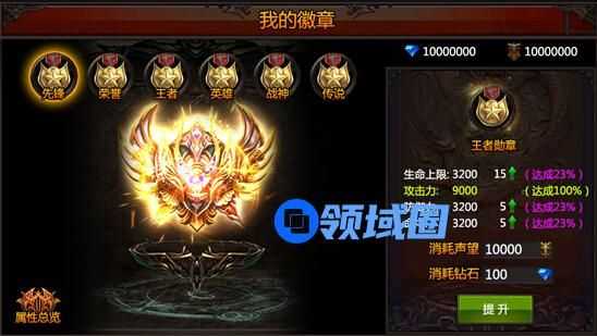 1.5.0更新后的竞技场的军衔界面里新增加了一个徽章按钮,这是一个消耗“成就值”提升自身属性的新系统。