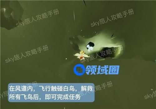 在风道内,飞行触碰白鸟,简单来说就是解救这些飞鸟,即可完成任务。