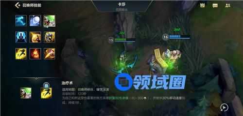 至于第二个技能选择什么,一般情况下只有两种,要么治疗,要么屏障,治疗一般是更加好的选择,但是也要看你的辅助,如果辅助带引燃,那么就选择治疗,如果队友是软辅,带的治疗,那你就选择屏障。