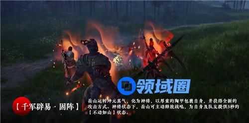 神将状态下,岳山可主动释放战吼,为自身及队友提供3秒的不动如山状态。