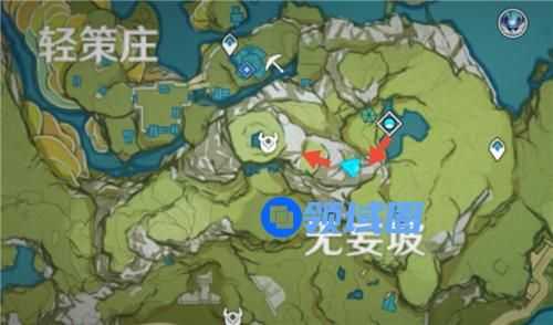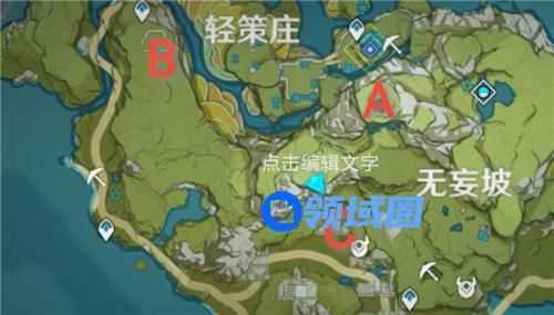 首先这三个碎片分别位于轻策庄附近的三个隐藏宝箱内,位置如下图所示,A是轻策庄最高处,B是西北方神像,C是遗迹。