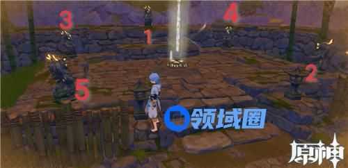 在此处需要按照正确的顺序点亮岩尊像,查看点亮顺序,全部点亮后会出现一个宝箱,打开宝箱后获得第一个碎片。