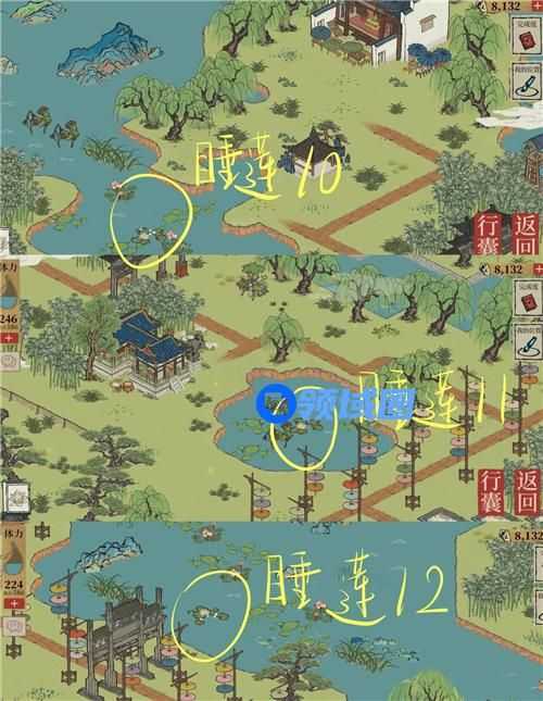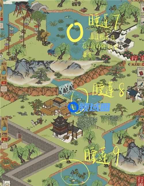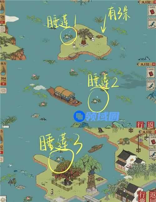 言归正传,这个就是15多睡莲的位置,大家可以跟着攻略来找,还是非常多的,一不注意就会漏掉。