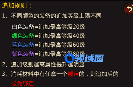 2) 追加没有失败概率,消耗【生命晶石】,不同追加级别消耗数量不一