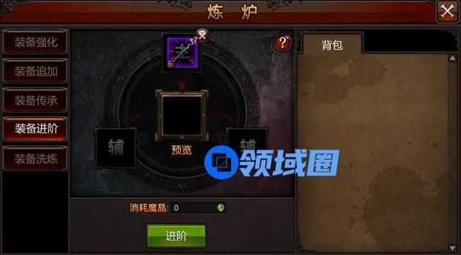 1) 放入三个相同的部件,并且为相同颜色的,可进阶成高一阶的相同颜色的装备