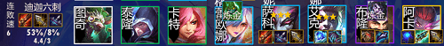 3、阵容站位如上,这套阵容胜率在53%,玩家可以尝试下这套阵容。