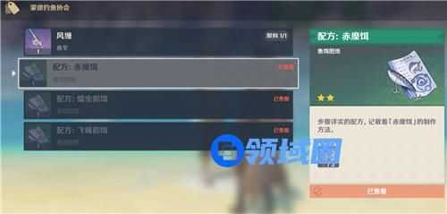 最后就能用3个花鳉兑换某个鱼饵配方了。
