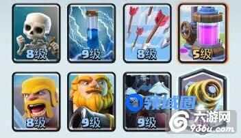 目标3000白卡升级9级优先级,小电>苍蝇海>皇家巨人=箭雨,这样能电死9级刀哥布林,并且苍蝇不会被10级小电秒掉。皇家巨人作为主力蹭血能保证强度。