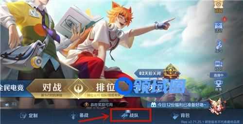 第一步:点击主界面底栏的战队,进入战队界面。
