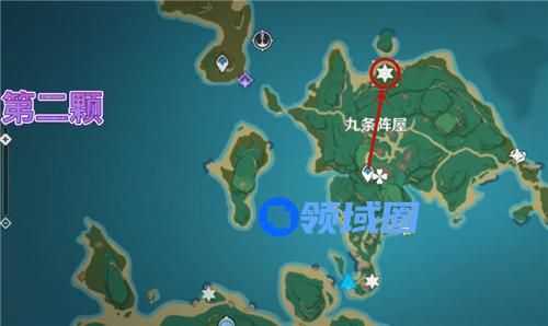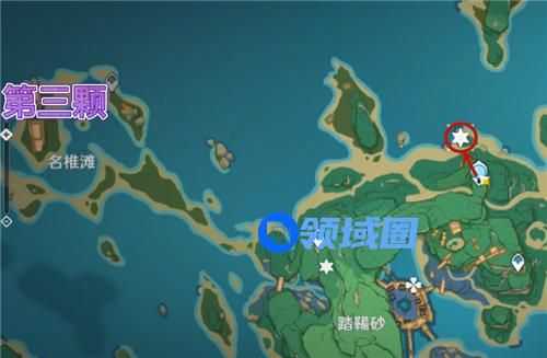 第二颗:传送到九条阵屋传送点,往北走穿过九条阵屋到沙滩可见。