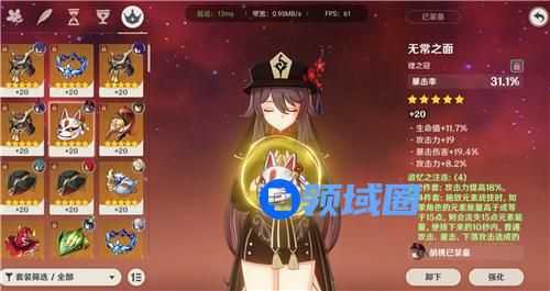 言归正传,胡桃的圣遗物目前就是带追忆,小编其实现在就带的是追忆,除了大招比魔女低一点,重击丝毫不差。