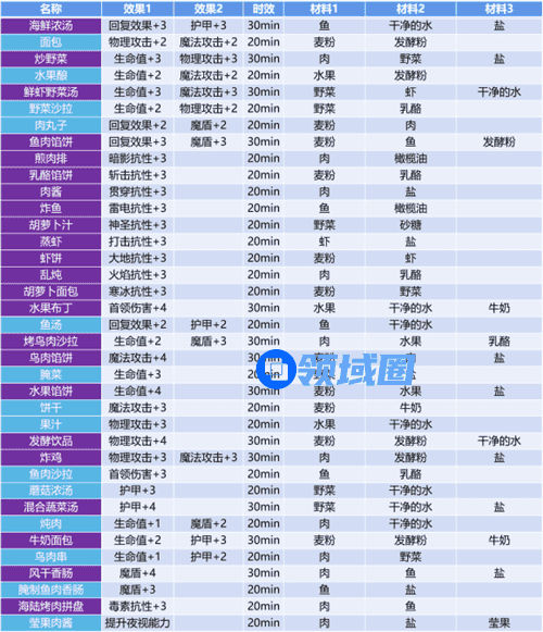 以上就是食谱合集,有遗漏的会慢慢补上,希望可以帮助到大家,各类食谱都会有着不同的加成,根据自己的需要进行制作即可。