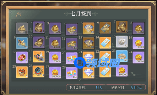 4、签到,每个月的每日签到也可以获得,不过基本都是一周可以领一次,固定那几个天数可以获得。