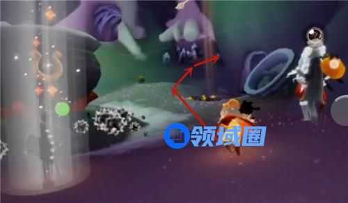 随后角色会跳进黑洞,传送到女巫的神秘派对活动地图,也就是万圣节活动的入口,入口往前会掉下去。从魔法炉子右侧这里,往下图所示的方向走。