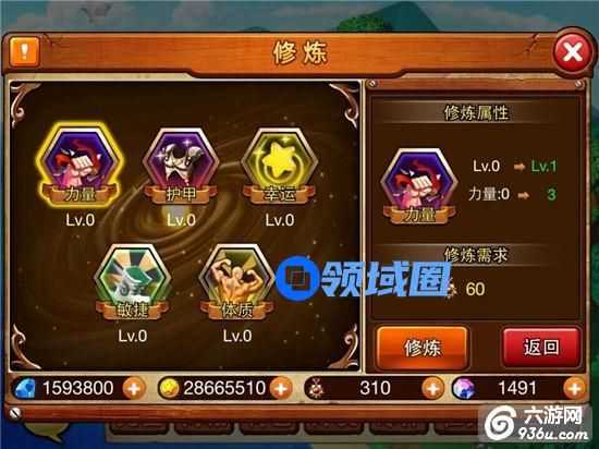 4、修炼等级越高提升的角色攻击、防御、生命、破防、暴击、免爆、免伤值越高;