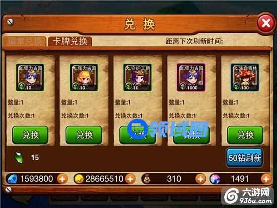 4、卡牌兑换:熔炼碎片可以到卡牌兑换里兑换相关卡牌的商品(卡牌碎片或成品卡牌)。
