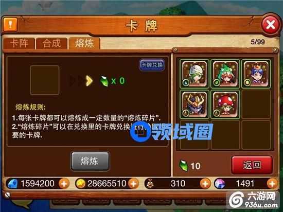 c)、熔炼碎片可充当货币进行卡牌兑换;
