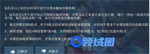 1、钻石段位5天不进行排位对局就会触发休眠,大师及以上是累计场次池计算,每打一局加一局场次池,最多存7场,每天自动消耗一场,场次池消耗完会触发休眠。